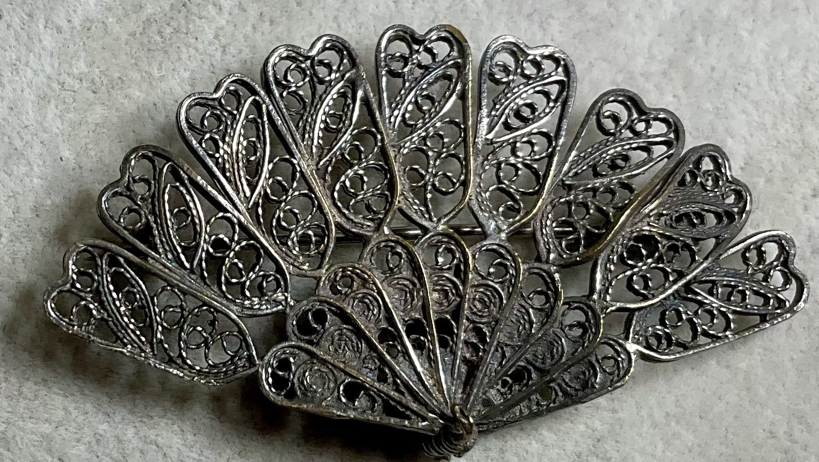 ホーム | ビンテージアクセサリー均一コーナー。 > ビンテージアクセサリー5000円均一コーナー。シルバーの銀糸細工ブローチ1940年イギリス