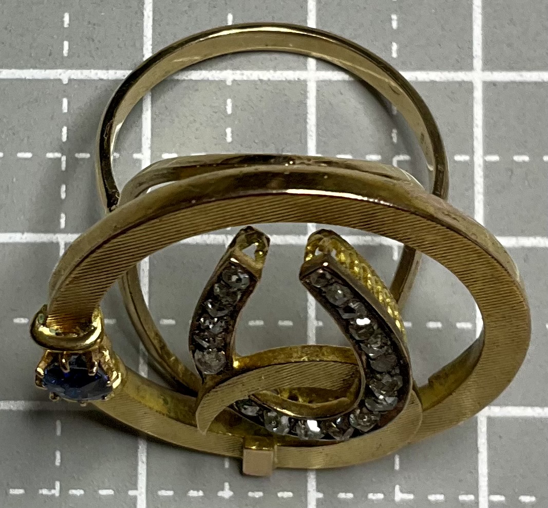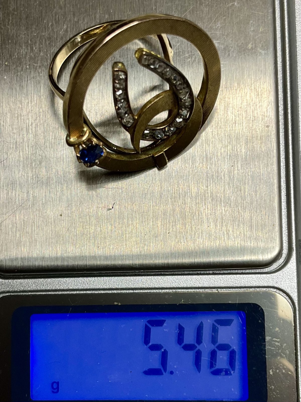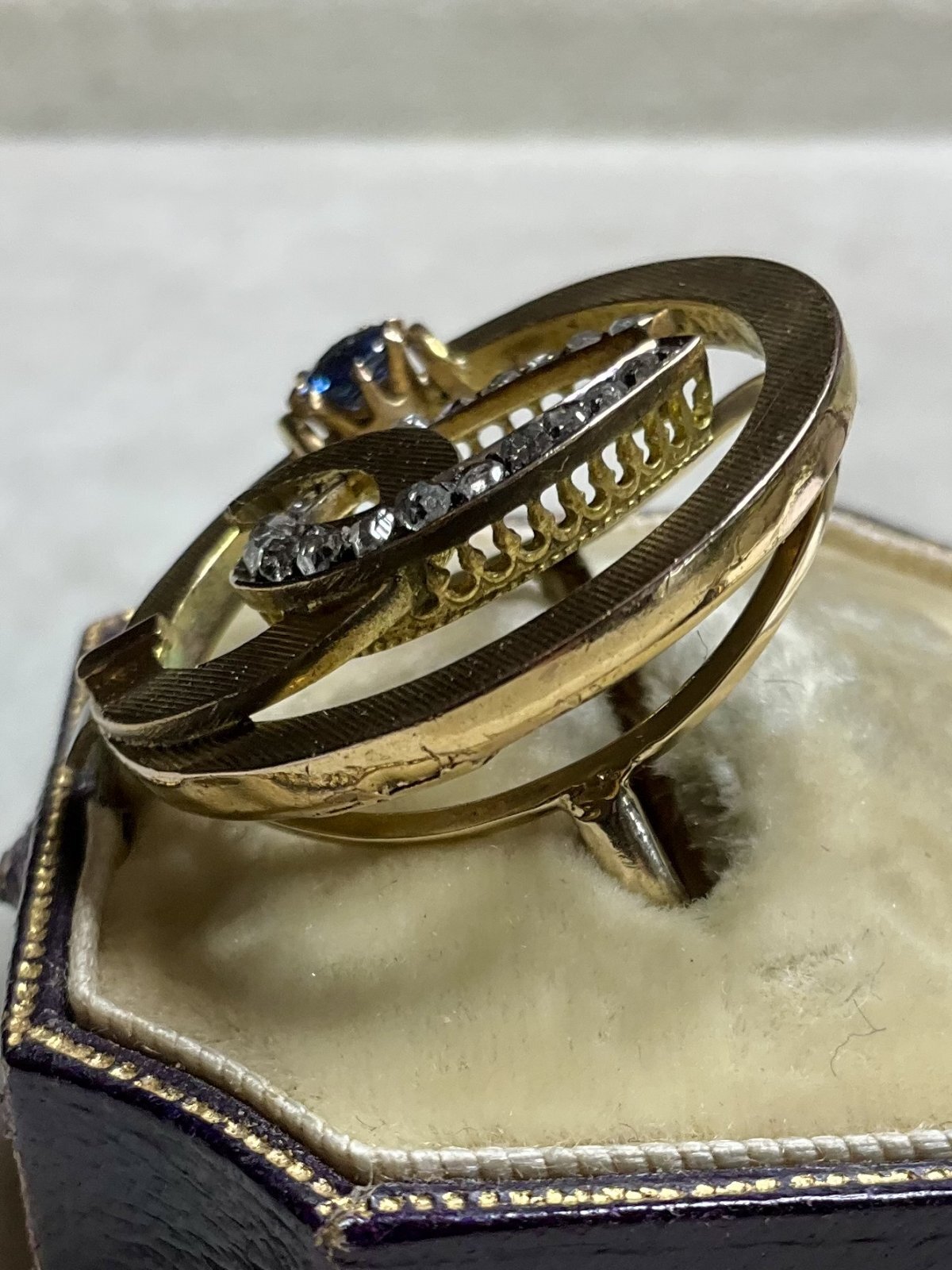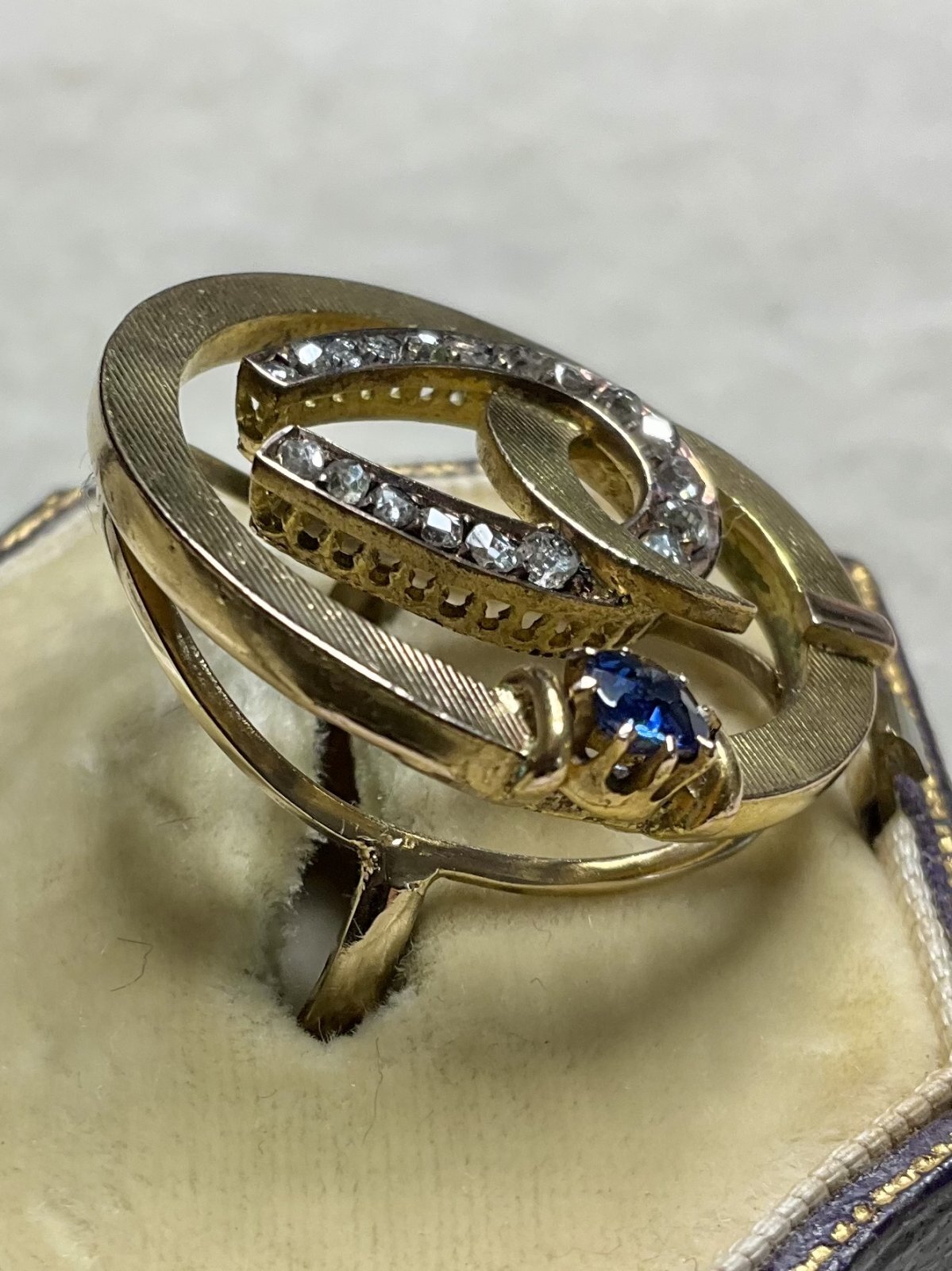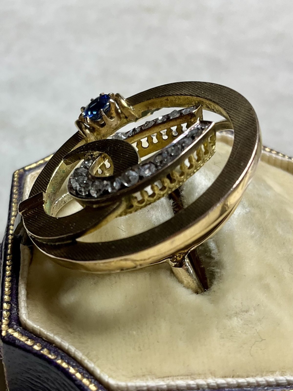 珍しいデザインの馬蹄のダイアモンド&サファイアリング1890年イギリス