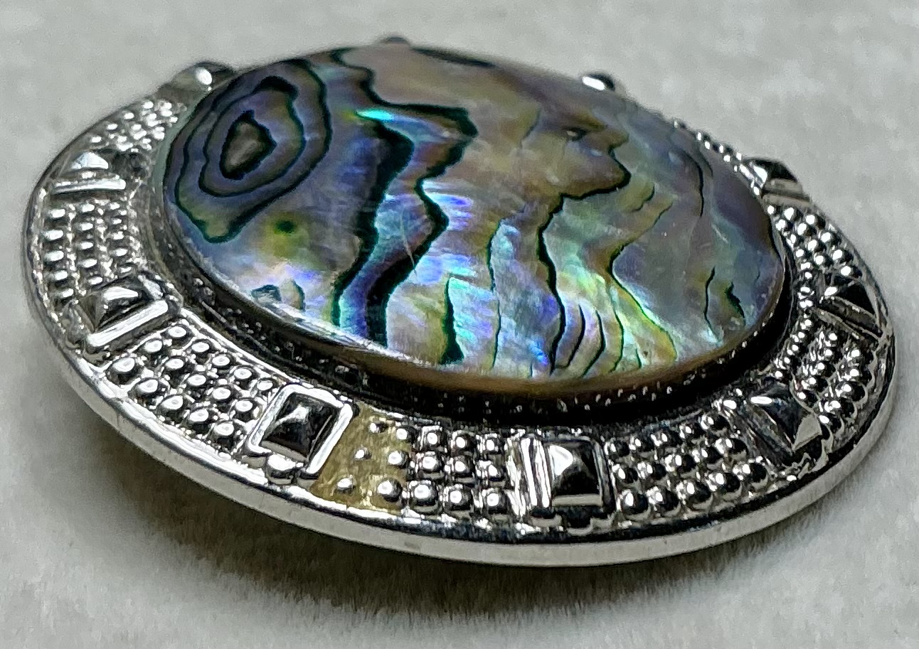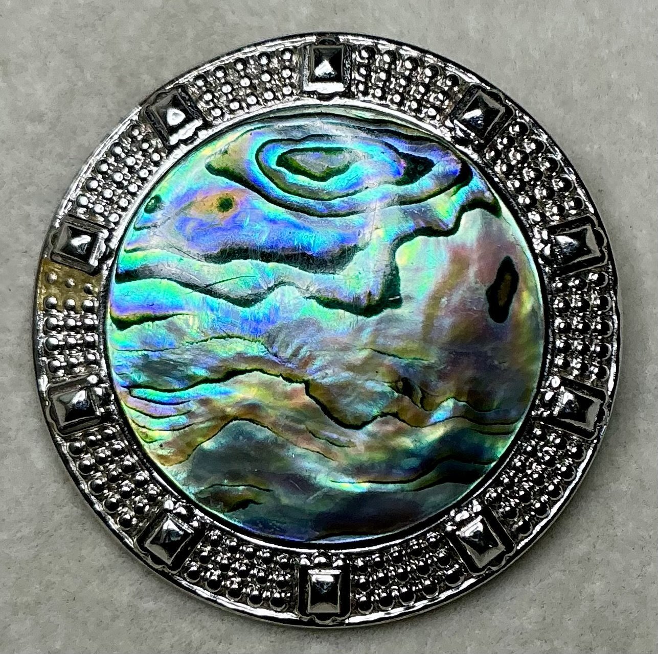 景色のような模様が綺麗なマザーオブパールのビンテージブローチ1940年イギリス