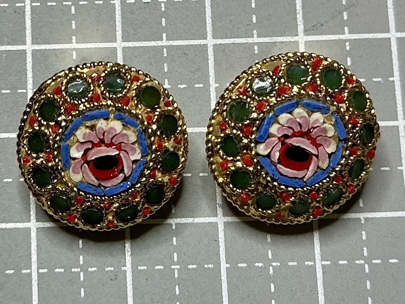 ホーム | ビンテージアクセサリー均一コーナー。 > ビンテージアクセサリー2000円均一コーナー⭐︎イヤリング、ピアス、カフスボタンローマンモザイクのビンテージイヤリング1970年イタリア