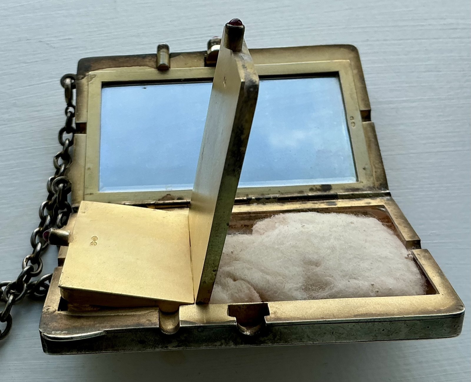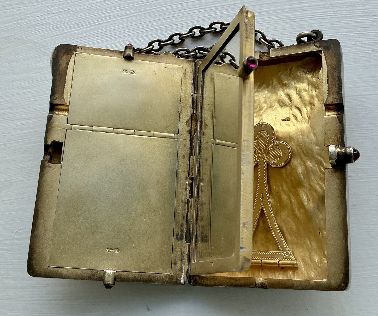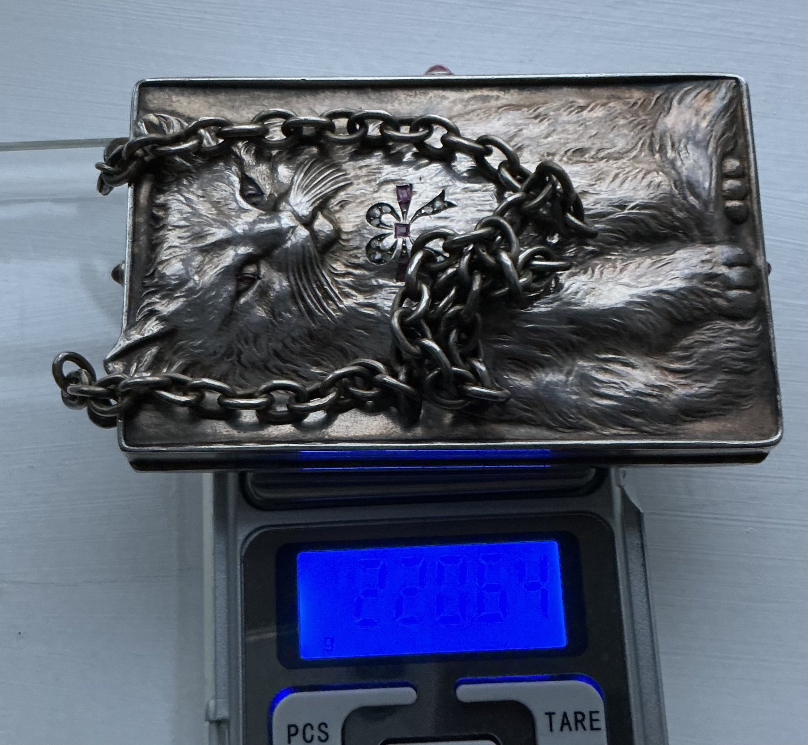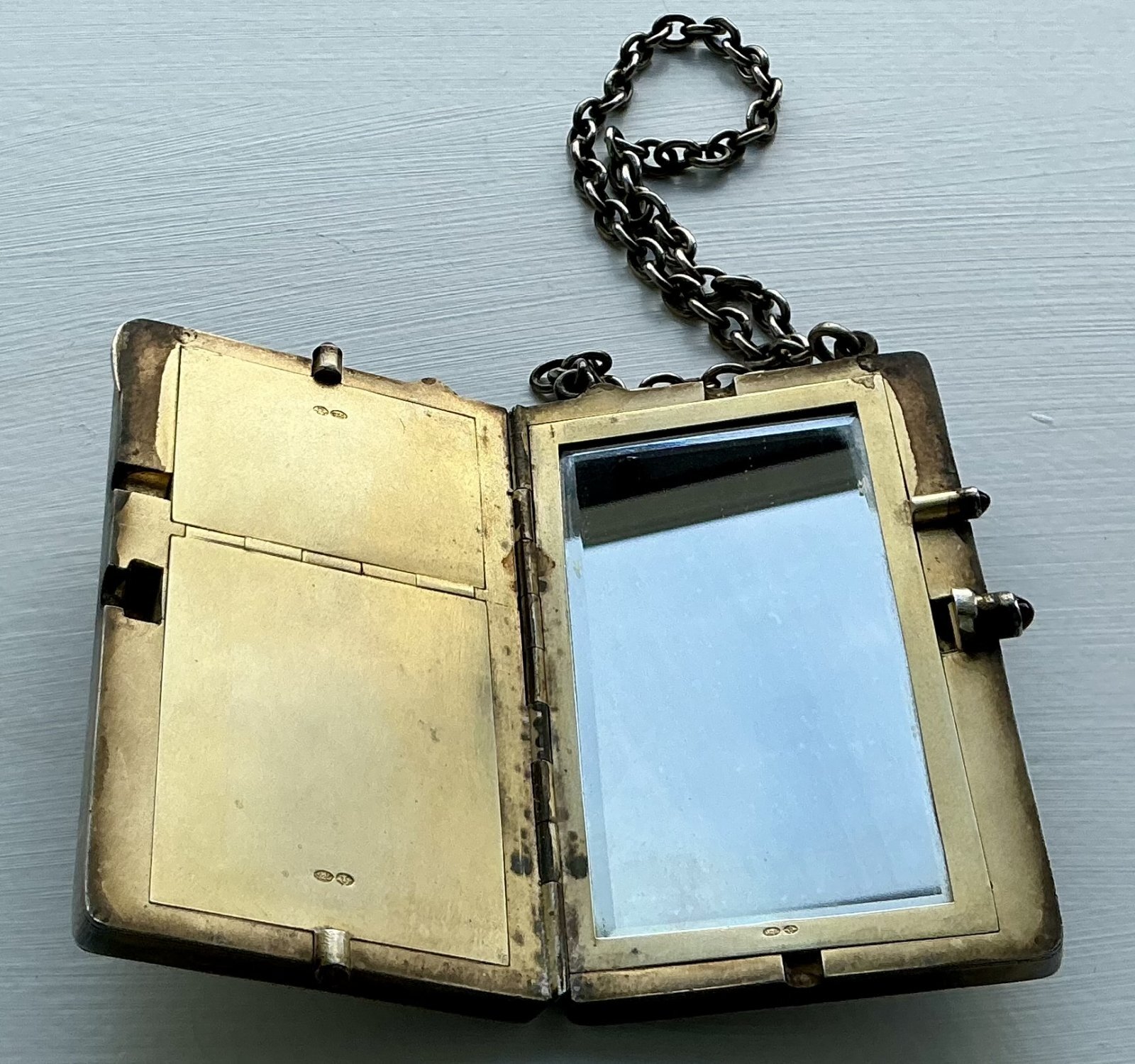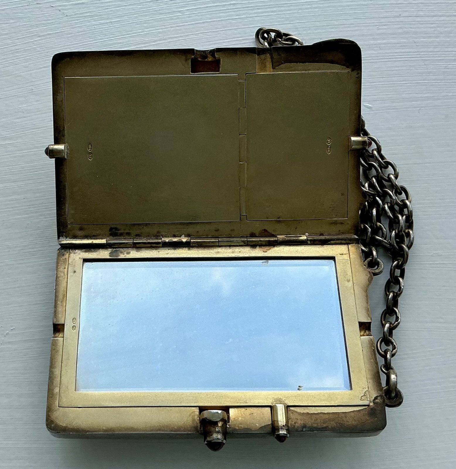 表情が素晴らしい猫のシルバーコンパクトミラーバッグ 1911年 ルイ・クッペンハイム作