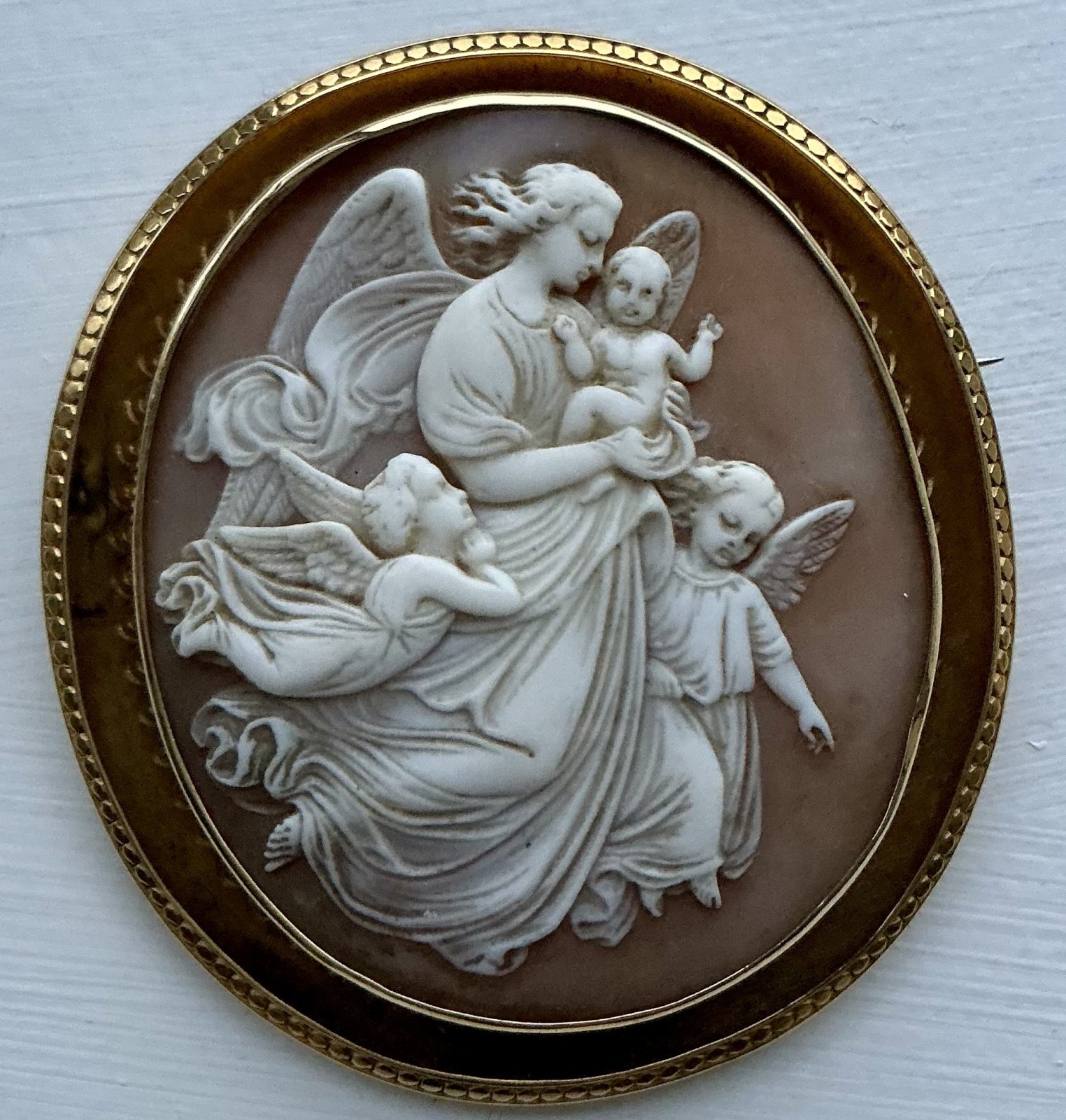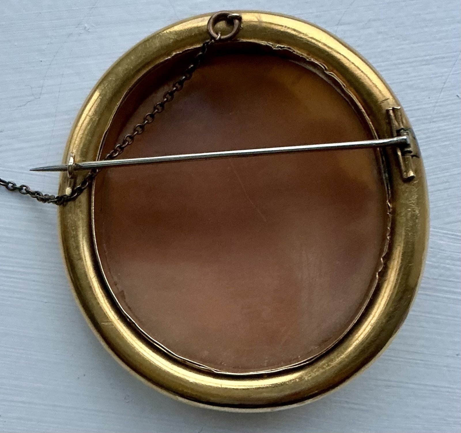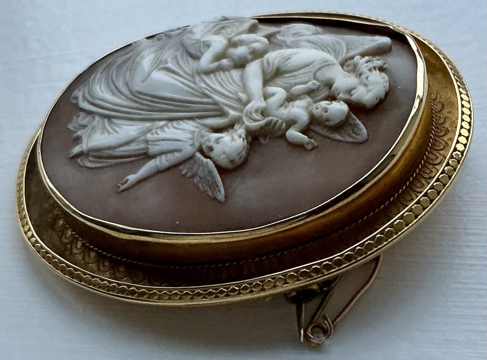 素晴らしい構図と彫刻のシェルカメオブローチ1870年イギリス1870年