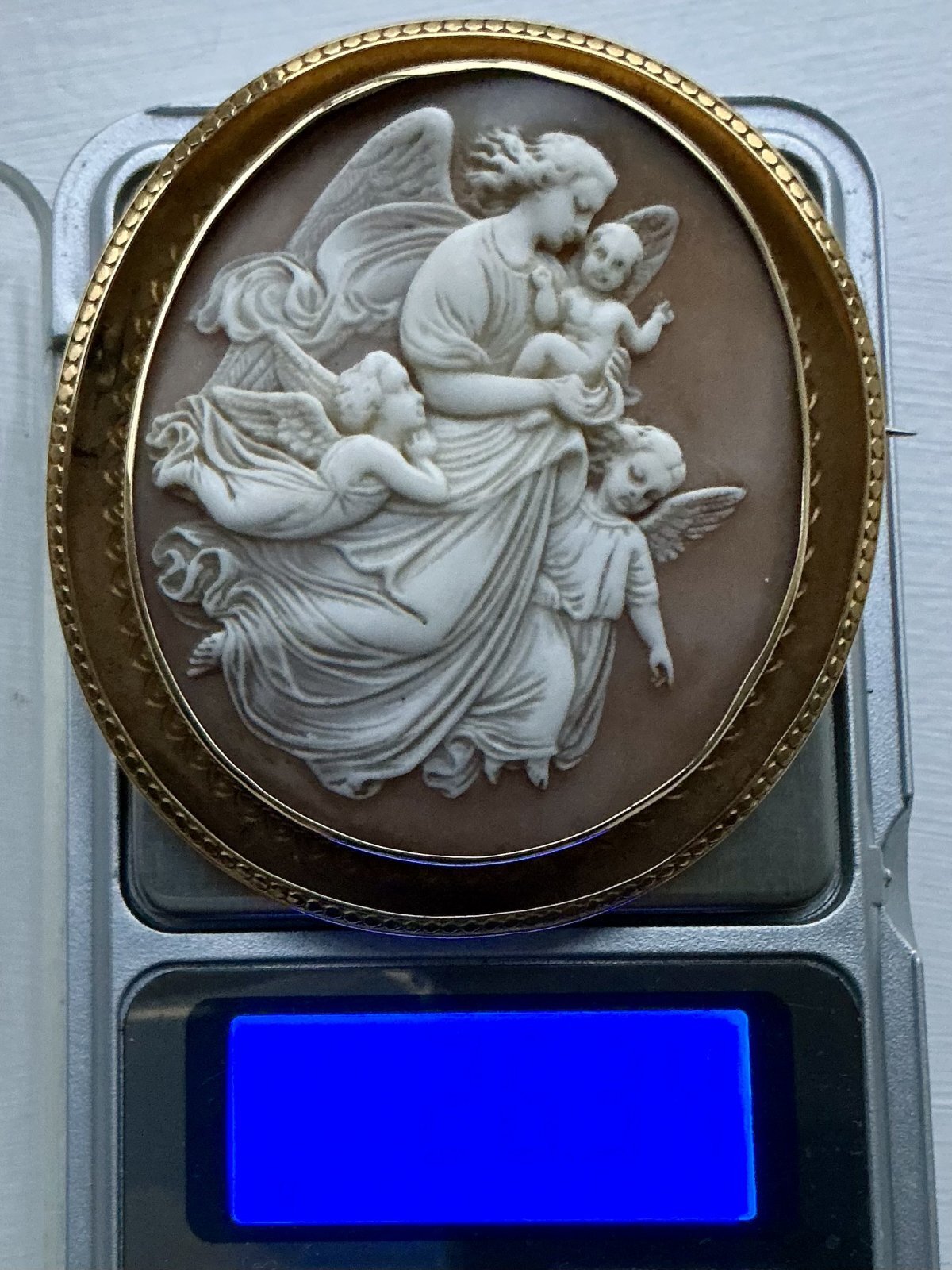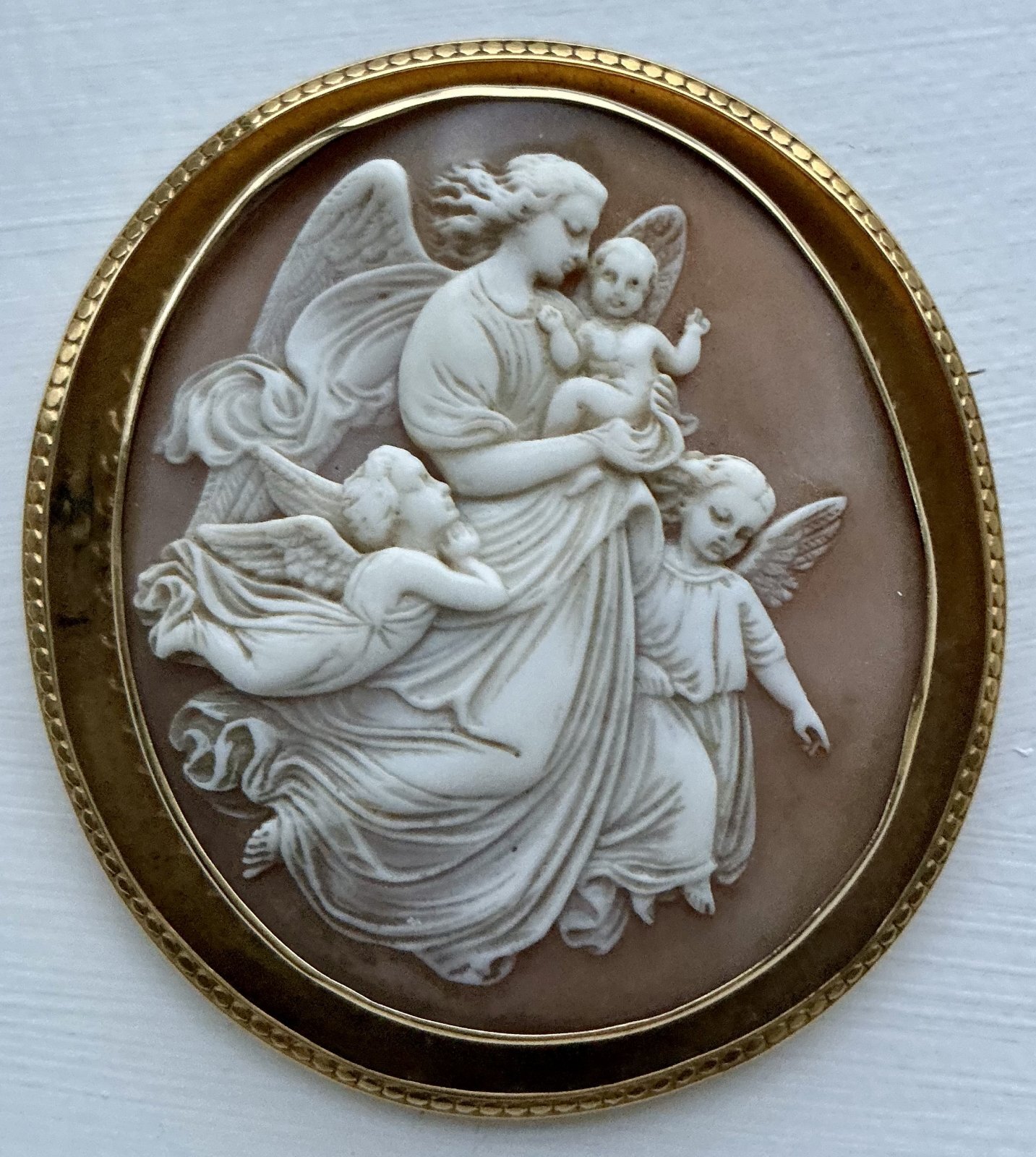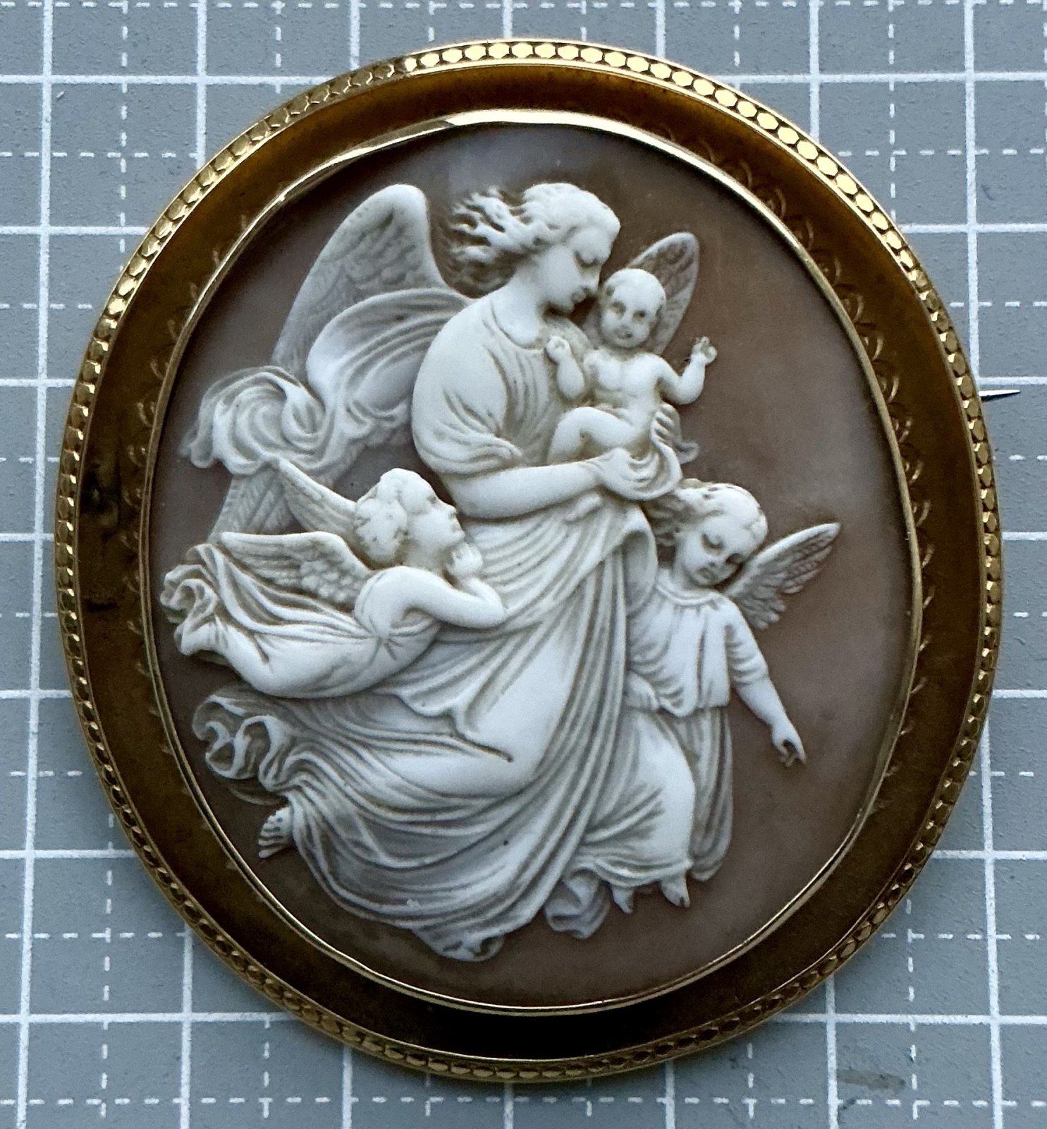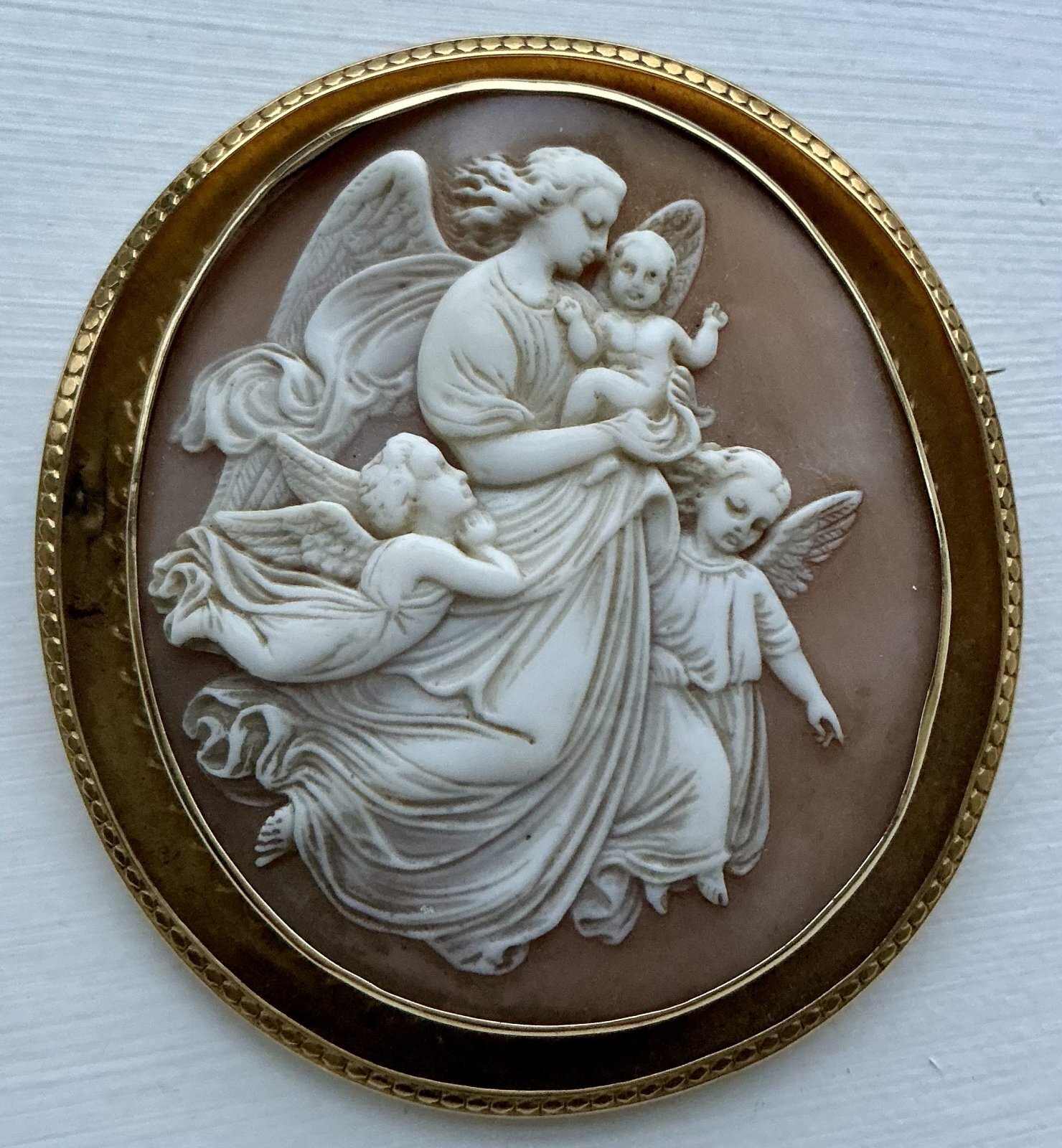 素晴らしい構図と彫刻のシェルカメオブローチ1870年イギリス1870年
