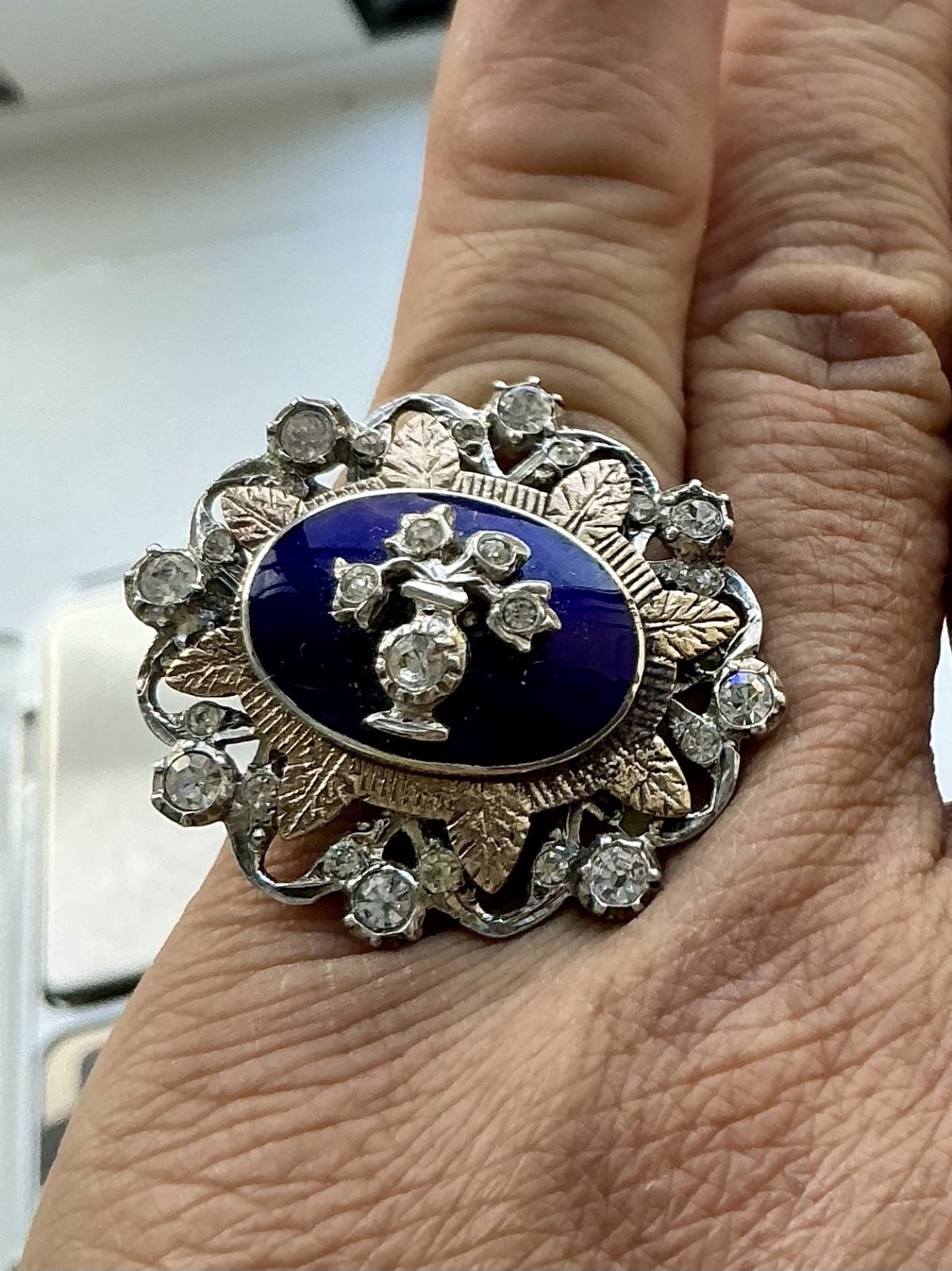 デザインが素敵なエナメルとダイアモンドリング1880年イギリス
