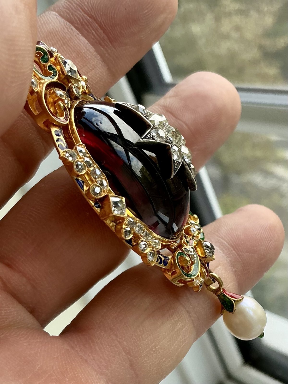 大きなガーネット、パール、ダイアモンド