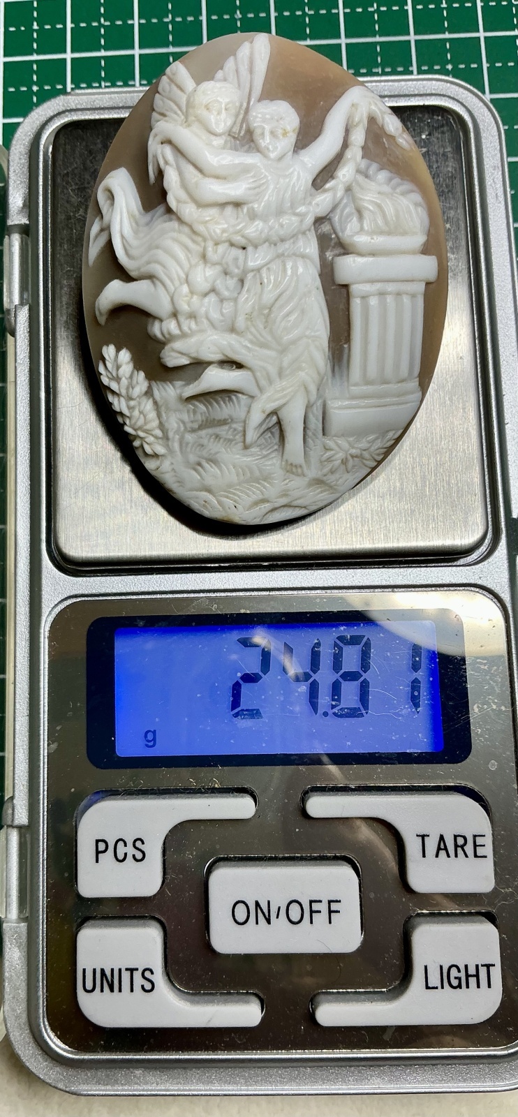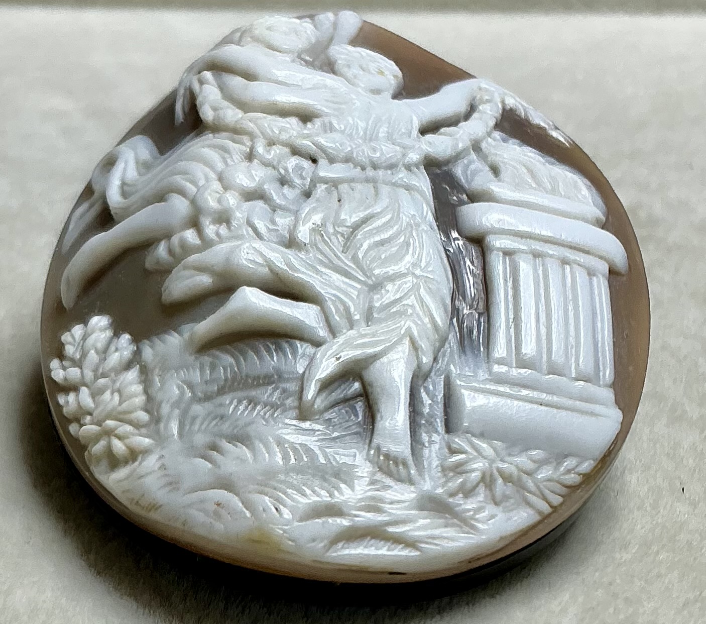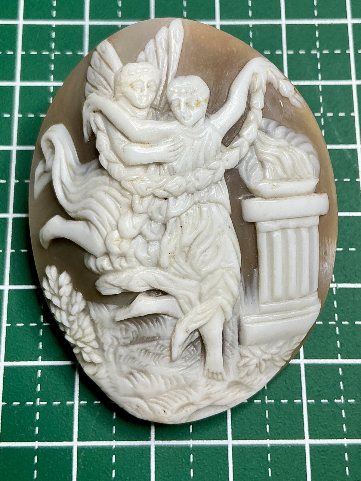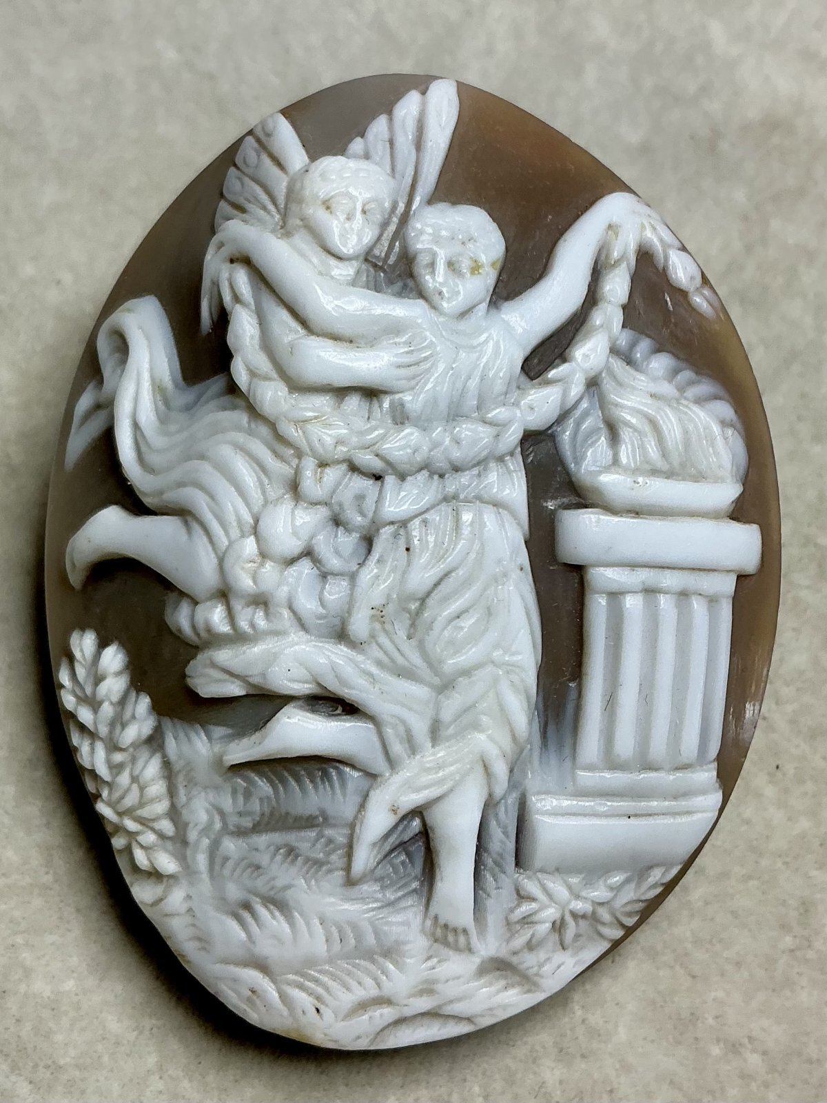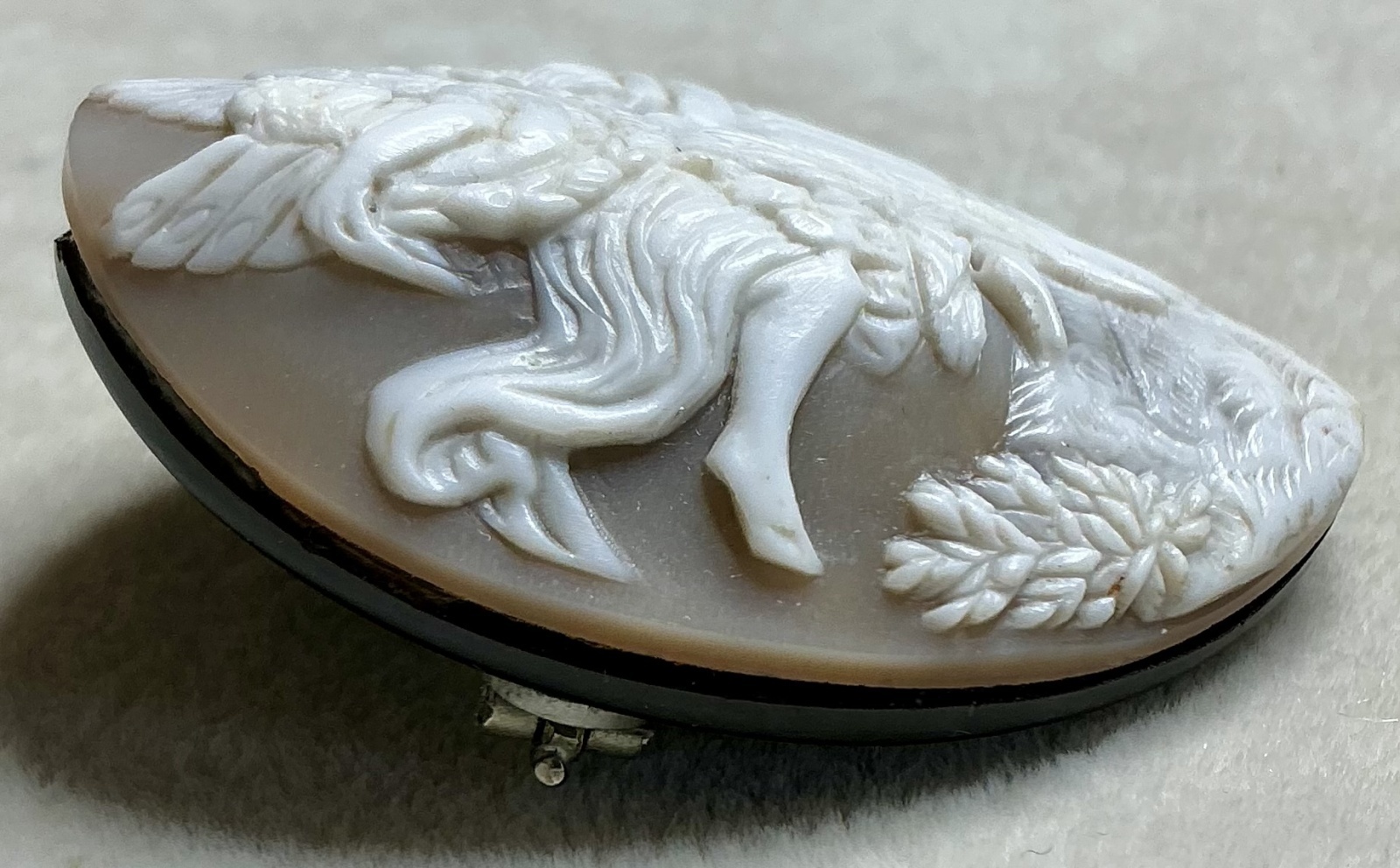 珍しいモチーフのシェルカメオ&ジェットブローチ1880年イギリス