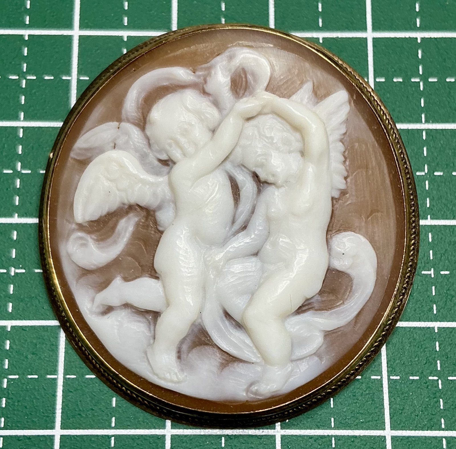 可愛い天使のシェルカメオブローチ1920年イギリス