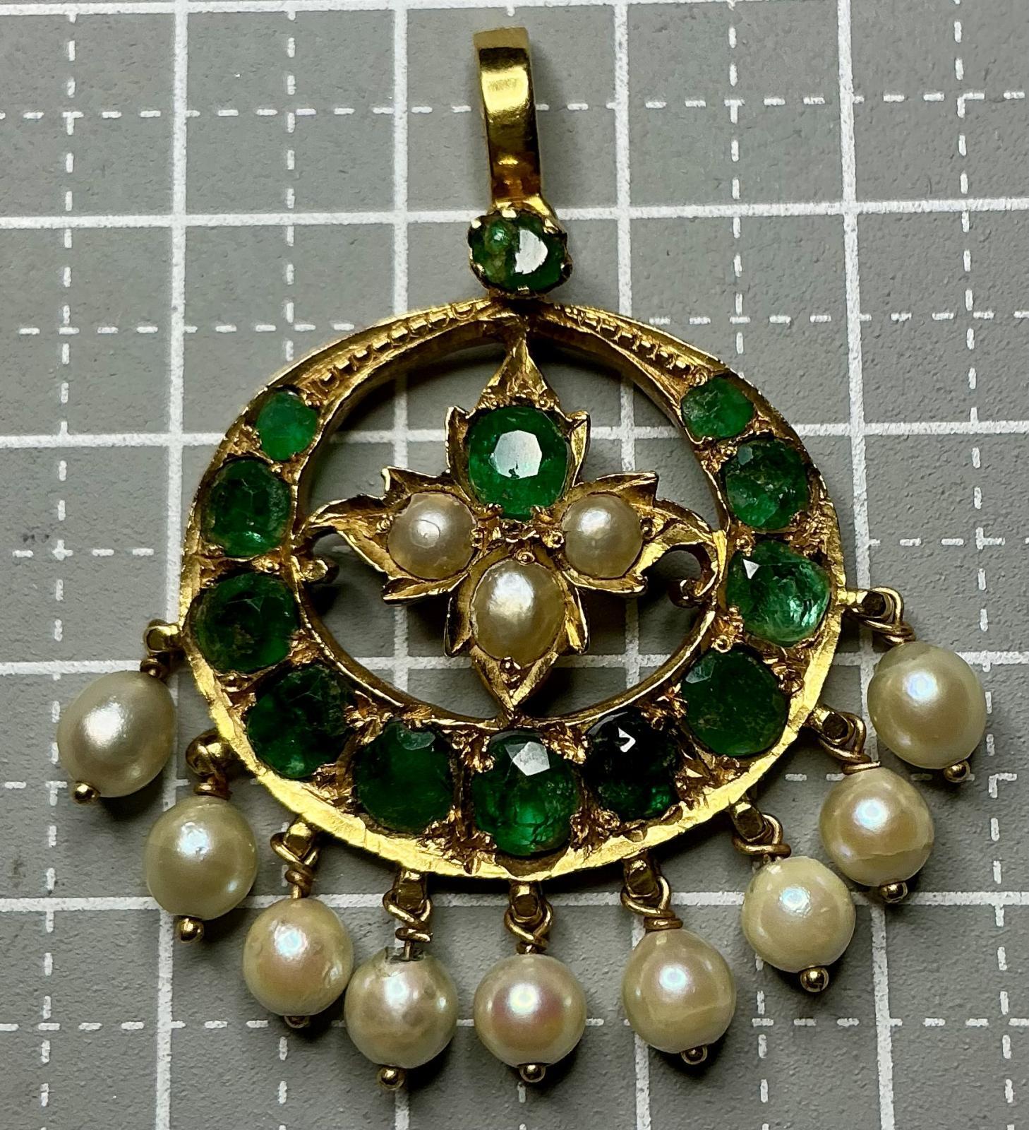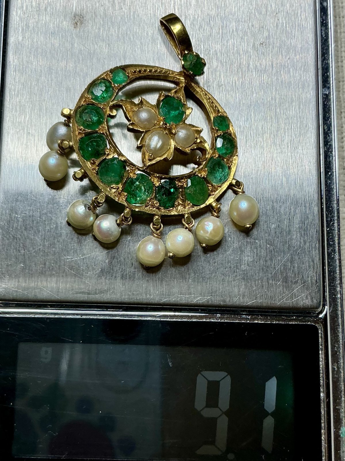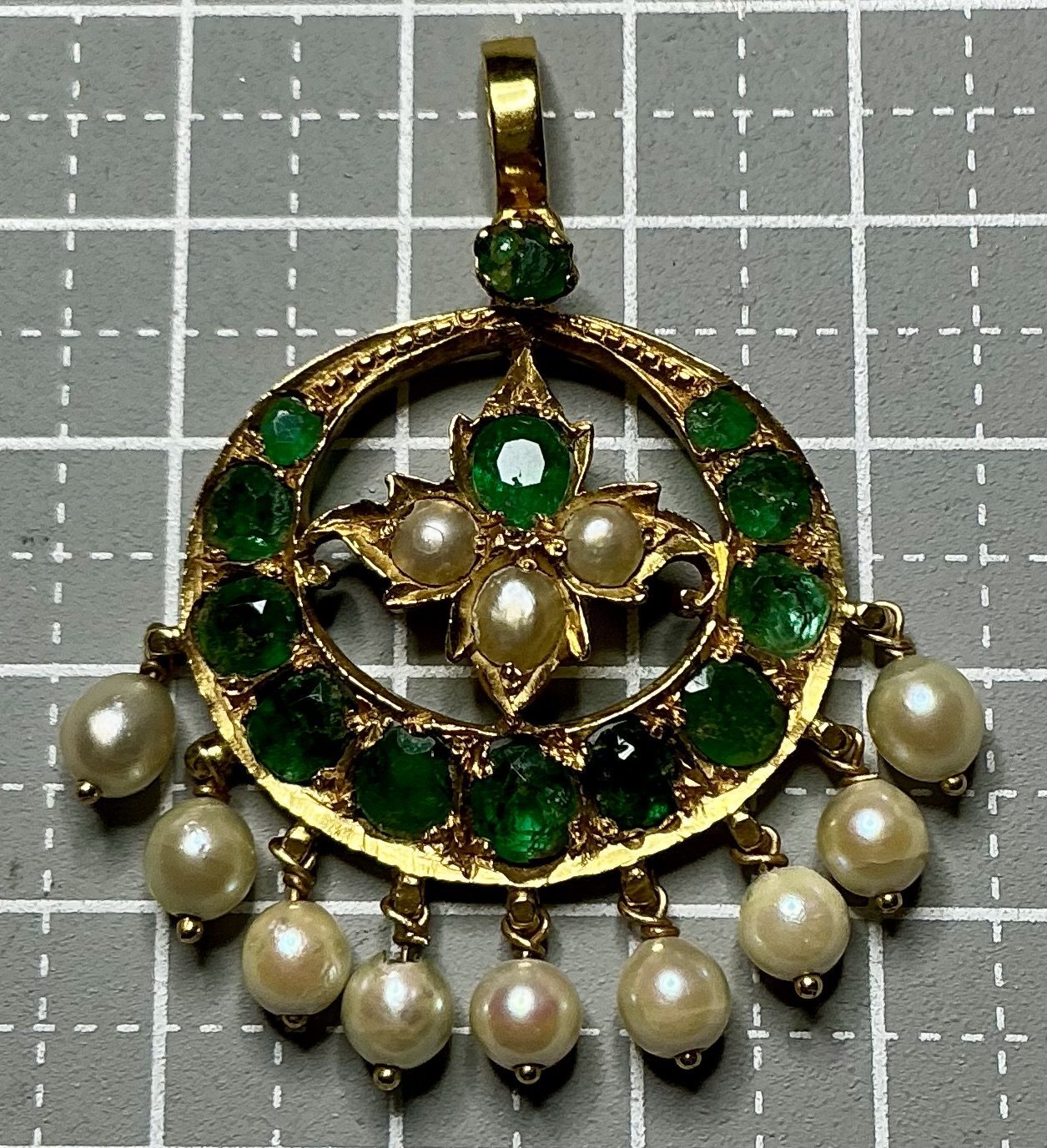 綺麗なエメラルドとパールのペンダントトップ1900年インド