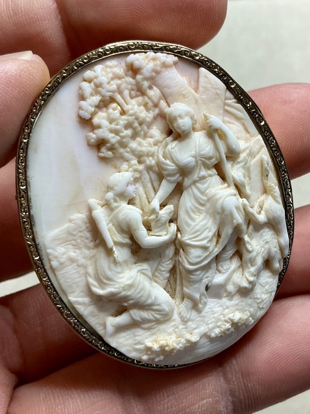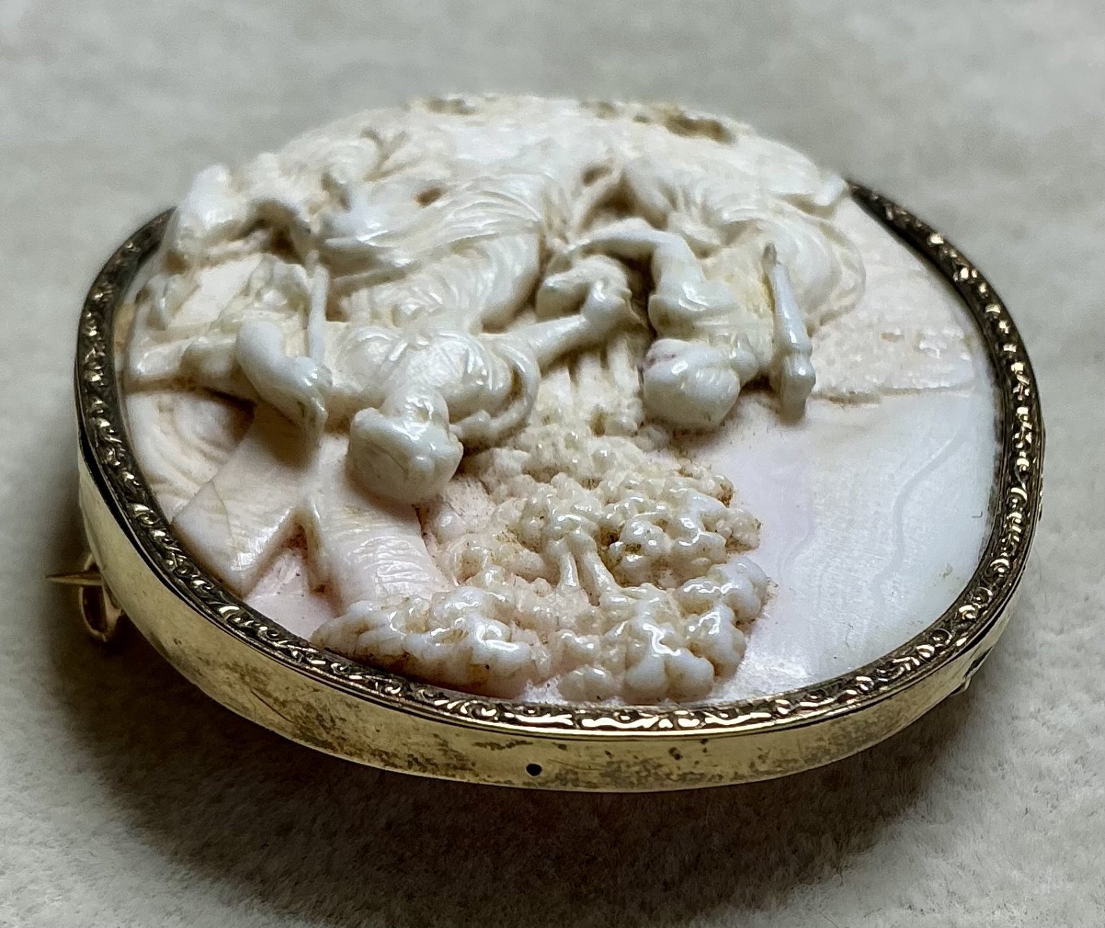 素晴らしい彫刻のコンクシェルカメオブローチ1880年イギリス